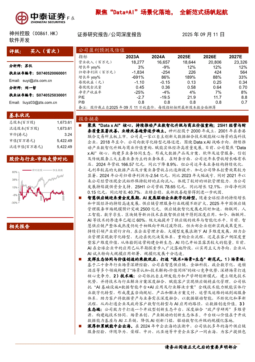 神州控股:中泰证券-神州控股-0861.HK-聚焦“Data+AI”场景化落地,全新范式扬帆起航-250911