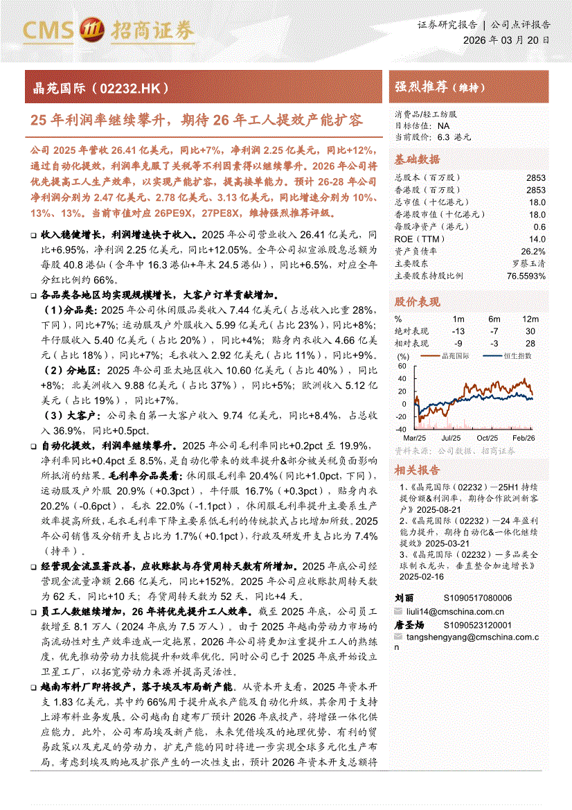 晶苑国际:招商证券-晶苑国际-2232.HK-25年利润率继续攀升,期待26年工人提效产能扩容-260320