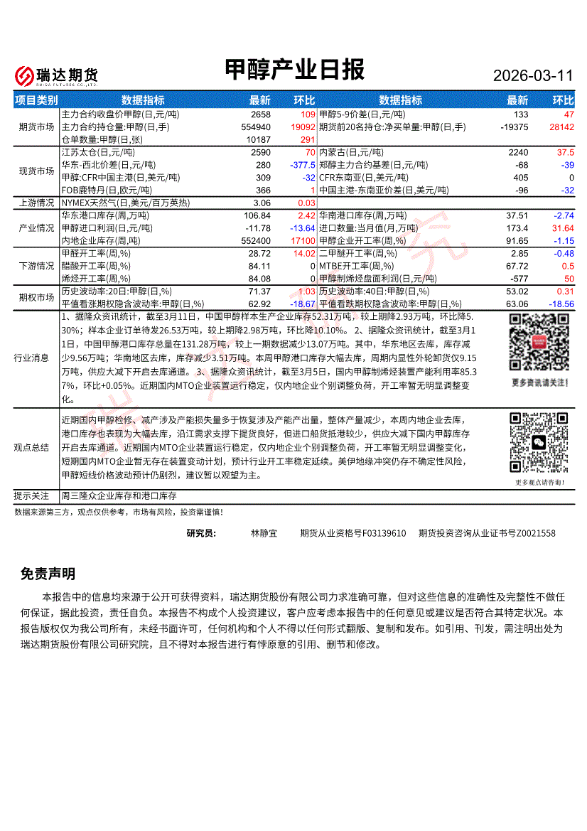 瑞达期货-甲醇产业日报-260311