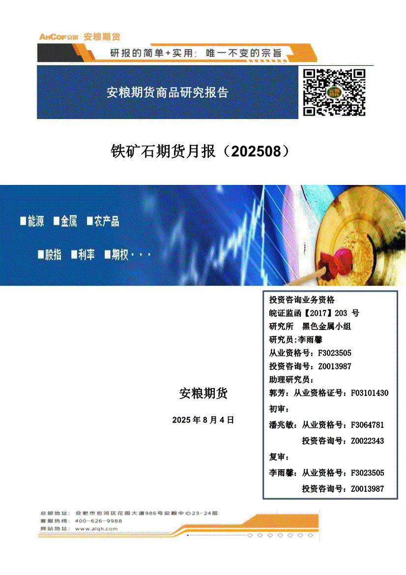 安粮期货-铁矿石期货月报:政策真空期+淡季需求走弱,铁矿震荡为主-250804