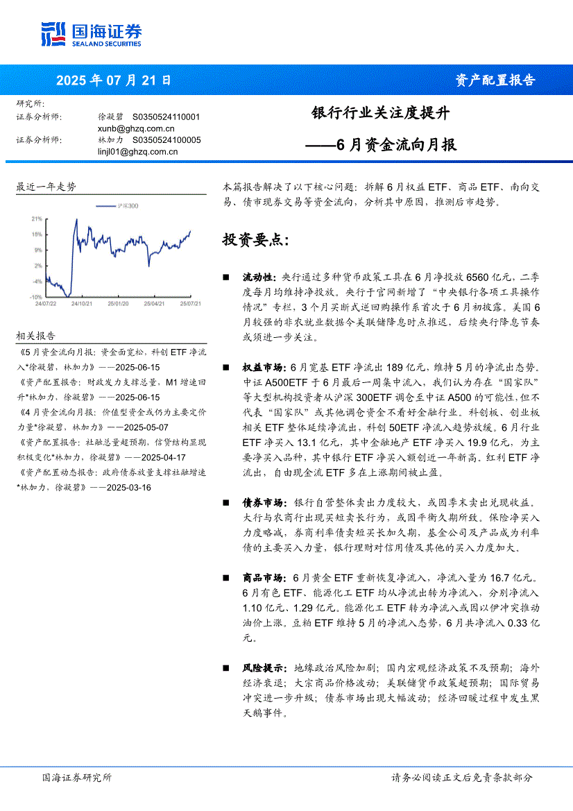 国海证券-6月资金流向月报:银行行业关注度提升-250721