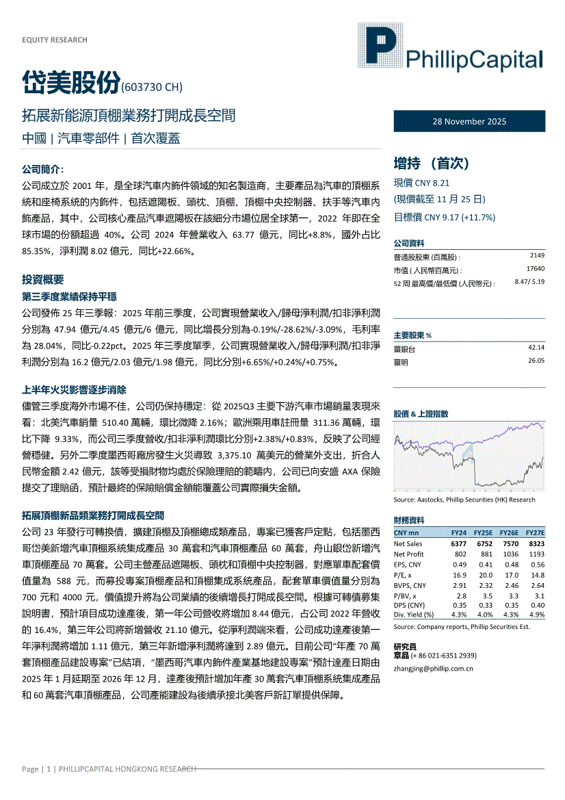 岱美股份:辉立证券-岱美股份-603730-拓展新能源頂棚業務打開成長空間-251128