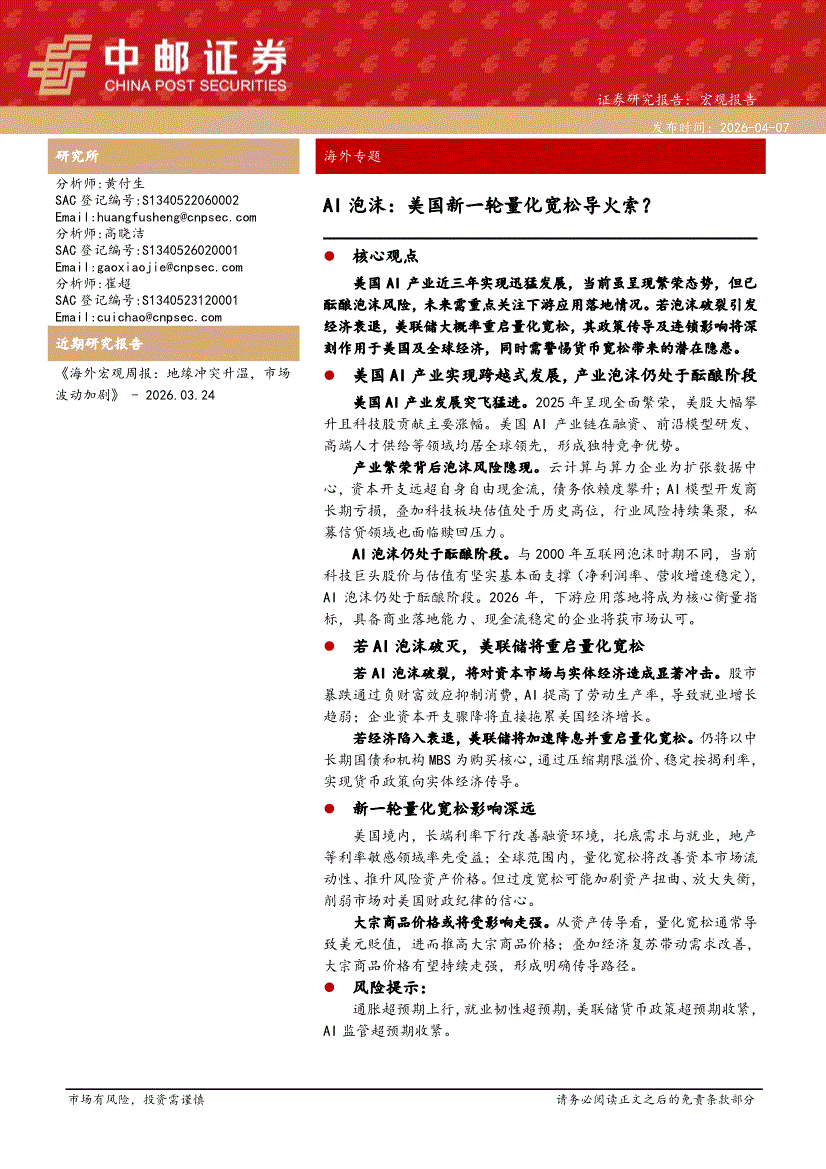 中邮证券-AI泡沫:美国新一轮量化宽松导火索?-260407