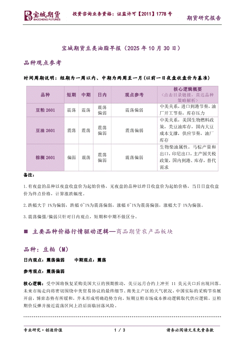 宝城期货-豆类油脂日报:中美达成初步,共识豆类油脂震荡不改-251027
