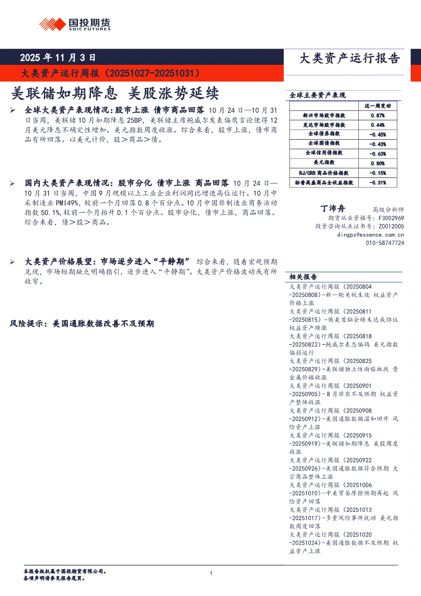 国投期货-大类资产运行周报:美国通胀数据不及预期,权益资产上涨-251027