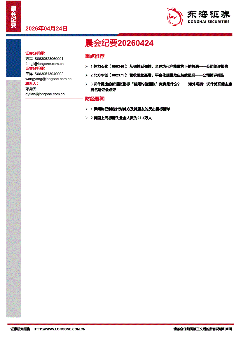 东海证券-晨会纪要-260424