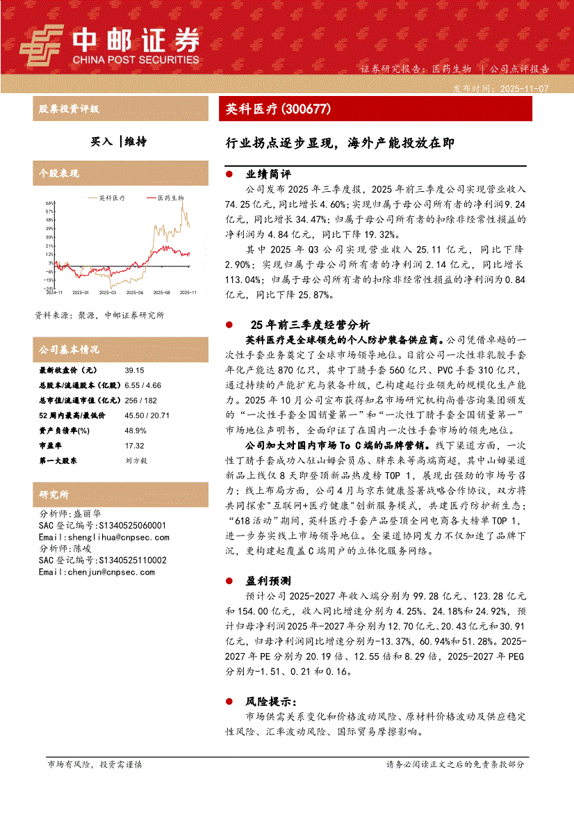 英科医疗:中邮证券-英科医疗-300677-行业拐点逐步显现,海外产能投放在即-251107