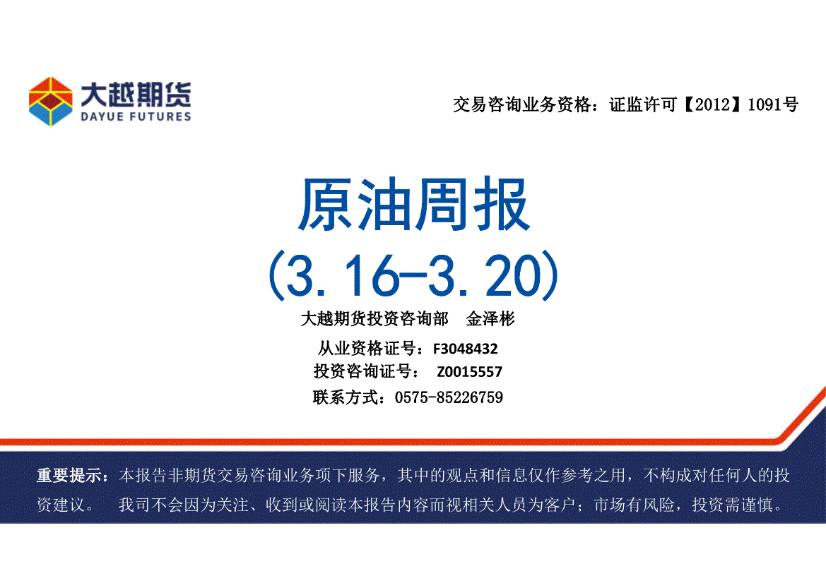 大越期货-原油周报-260320
