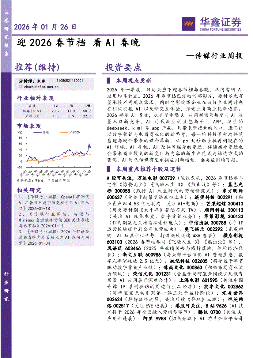 传媒行业:华鑫证券-传媒行业周报:迎2026春节档,看AI春晚-260126