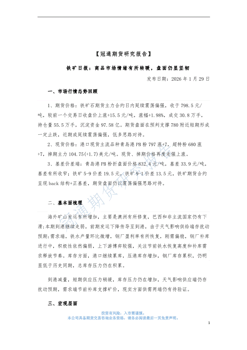 冠通期货-铁矿日报:商品市场情绪有所转暖,盘面仍显坚韧-260129