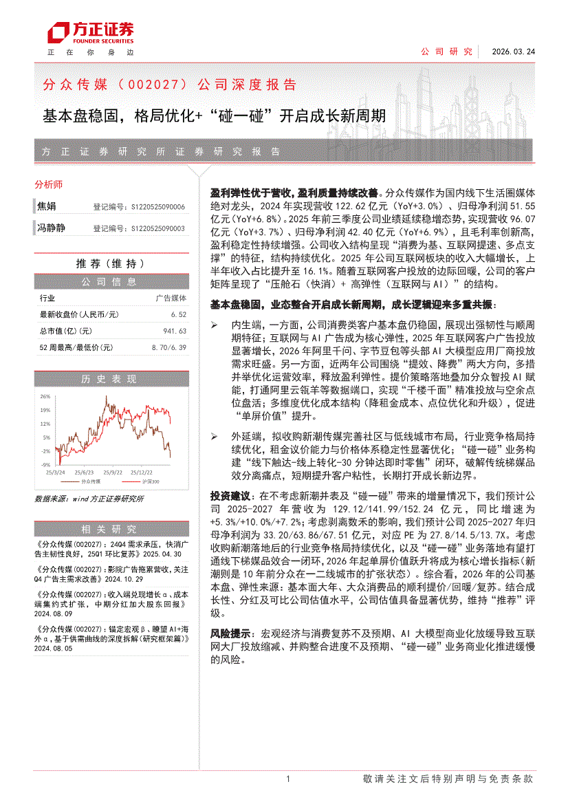 分众传媒:方正证券-分众传媒-002027-公司深度报告:基本盘稳固,格局优化+“碰一碰”开启成长新周期-260324
