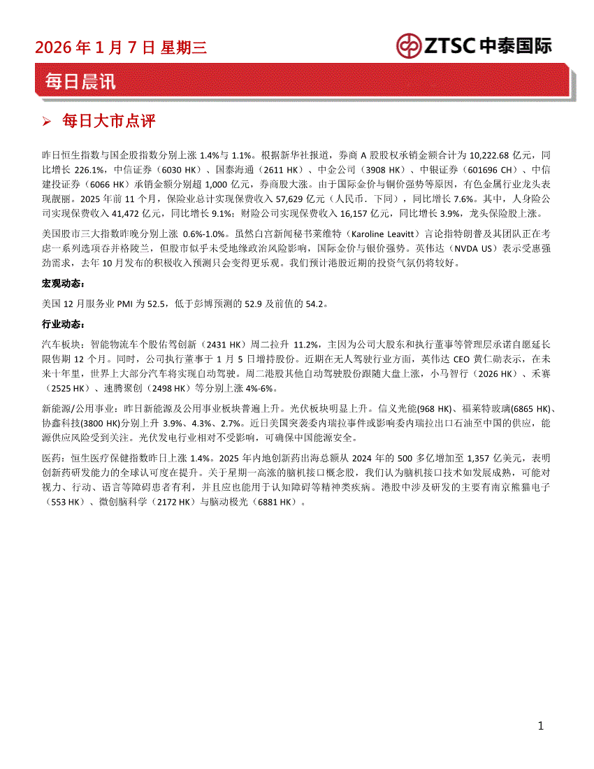 中泰国际-每日晨讯-260107
