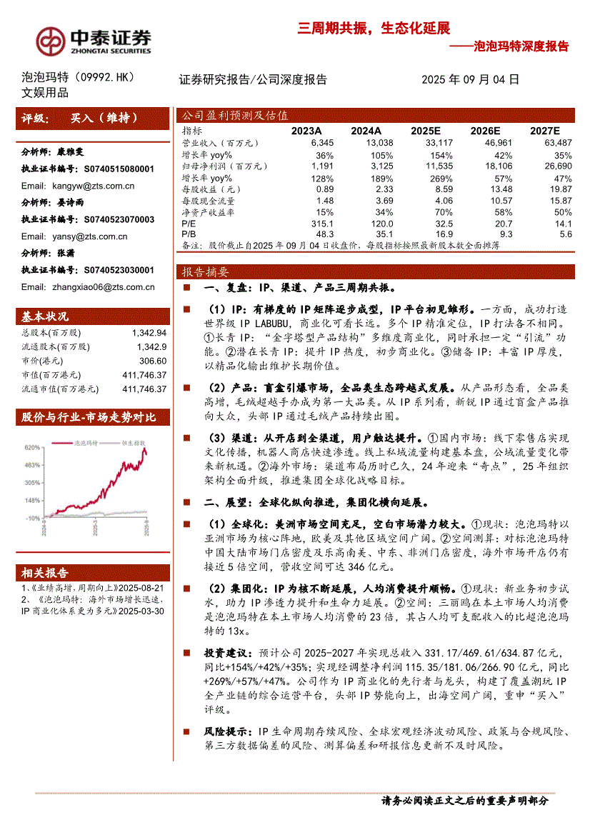 泡泡玛特:中泰证券-泡泡玛特-9992.HK-深度报告:三周期共振,生态化延展-250904