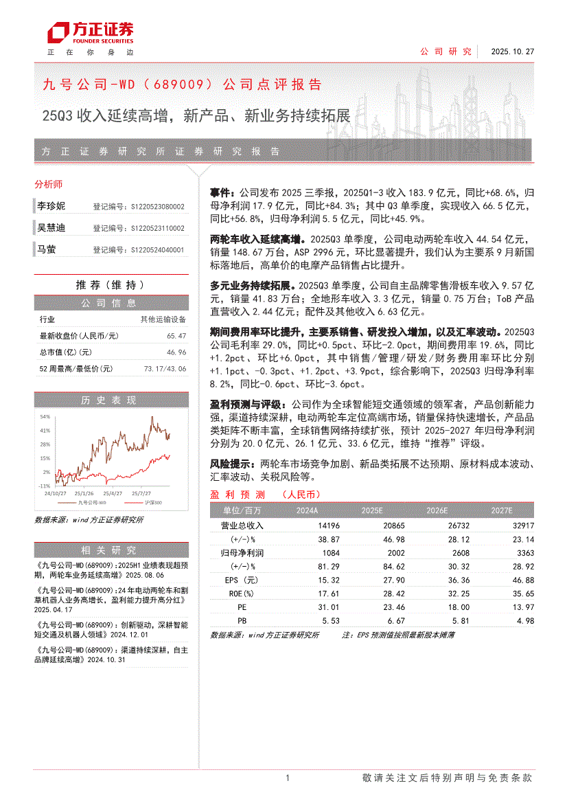 九号公司:方正证券-九号公司-689009-公司点评报告:25Q3收入延续高增,新产品、新业务持续拓展-251027