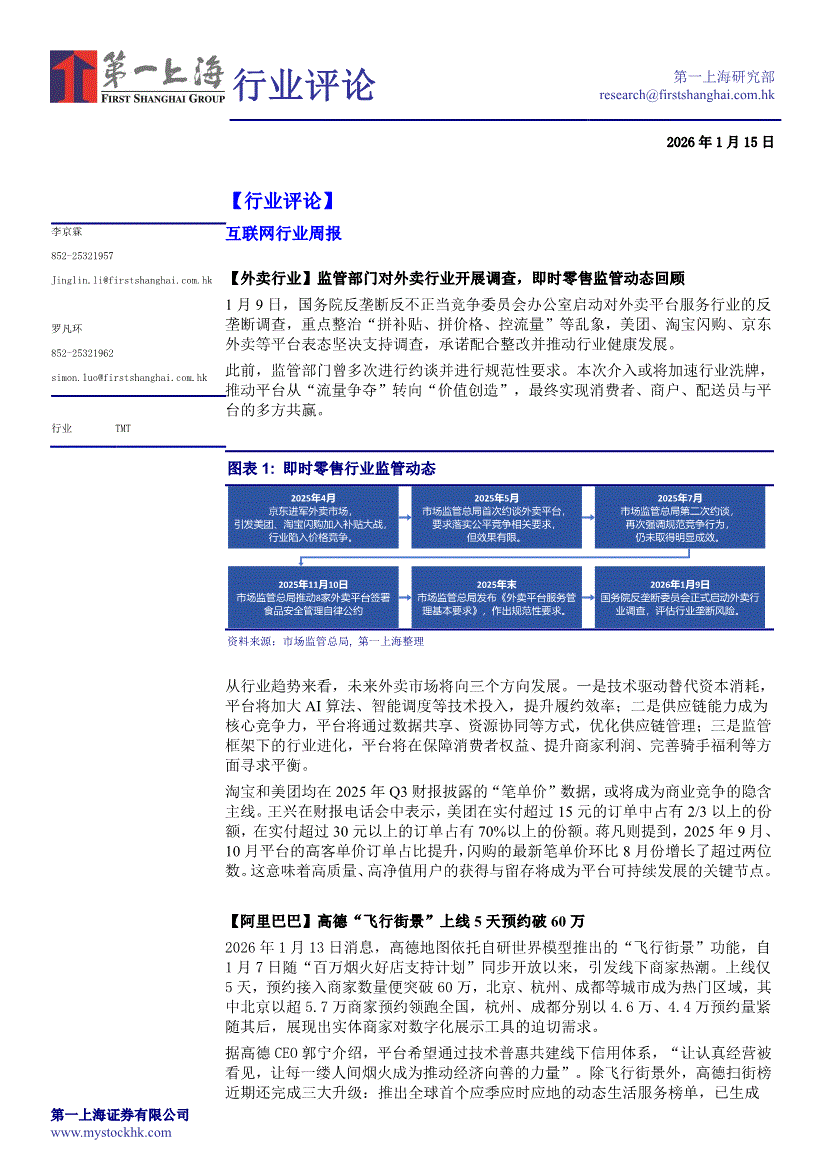 第一上海-互联网行业周报-260115