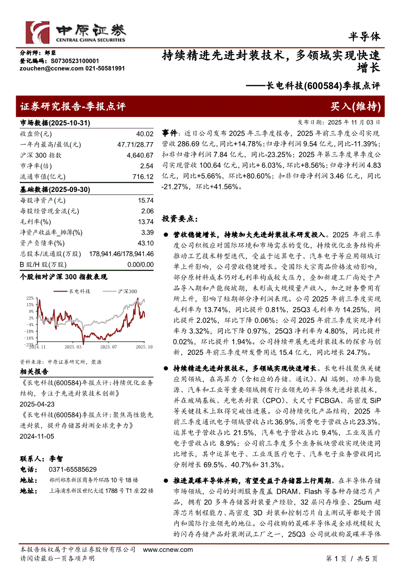 长电科技:中原证券-长电科技-600584-季报点评:持续精进先进封装技术,多领域实现快速增长-251103