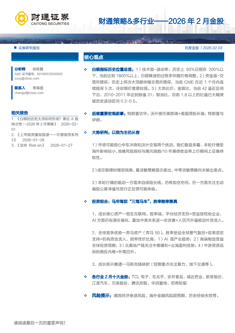 财通证券-策略&多行业—2026年2月金股-260203