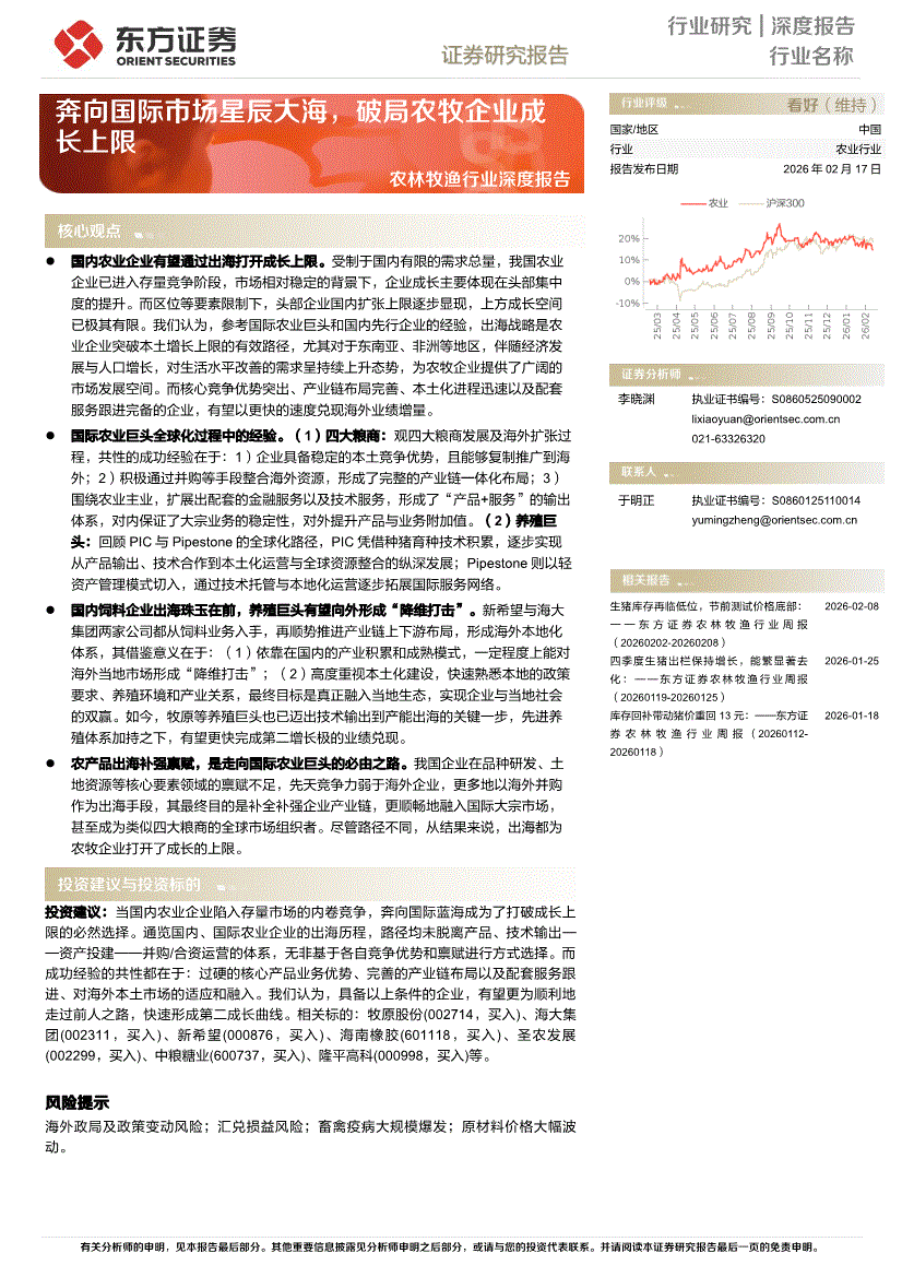 农林牧渔行业:东方证券-农林牧渔行业深度报告:奔向国际市场星辰大海,破局农牧企业成长上限-260217