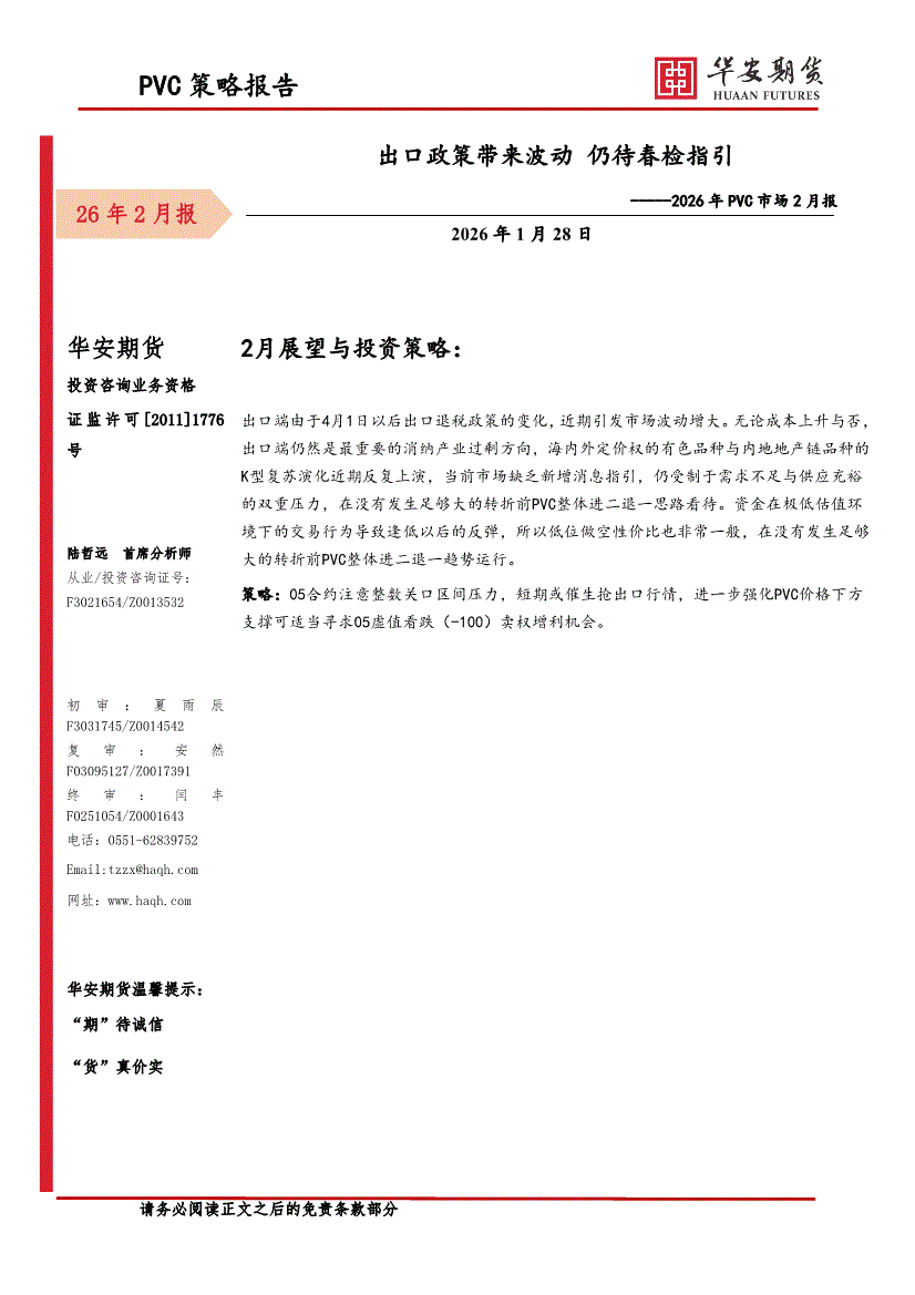 华安期货-2026年PVC市场2月报:出口政策带来波动,仍待春检指引-260128