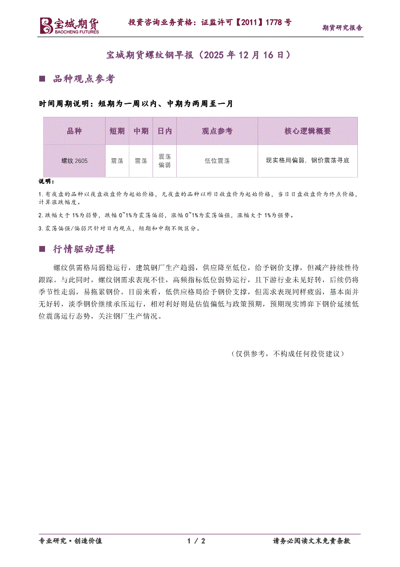 宝城期货-螺纹钢早报-251216