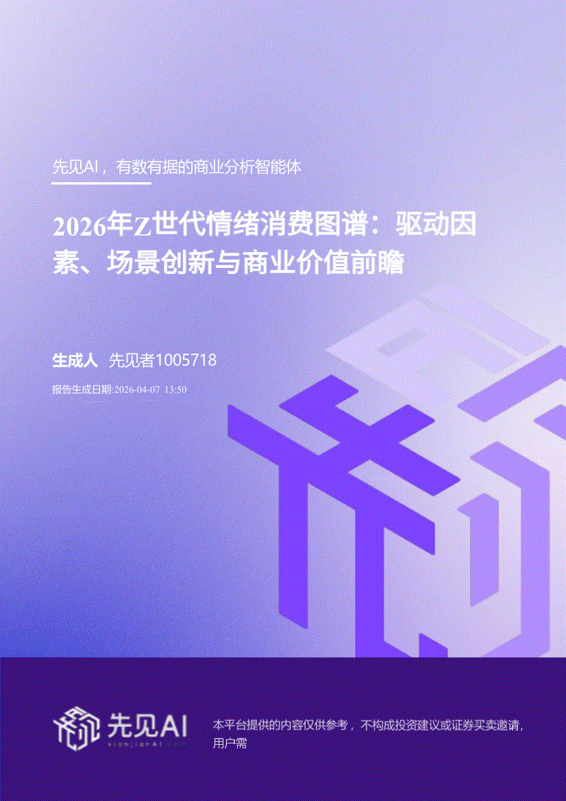 先见AI-2026年Z世代情绪消费图谱:驱动因素、场景创新与商业价值前瞻-260407