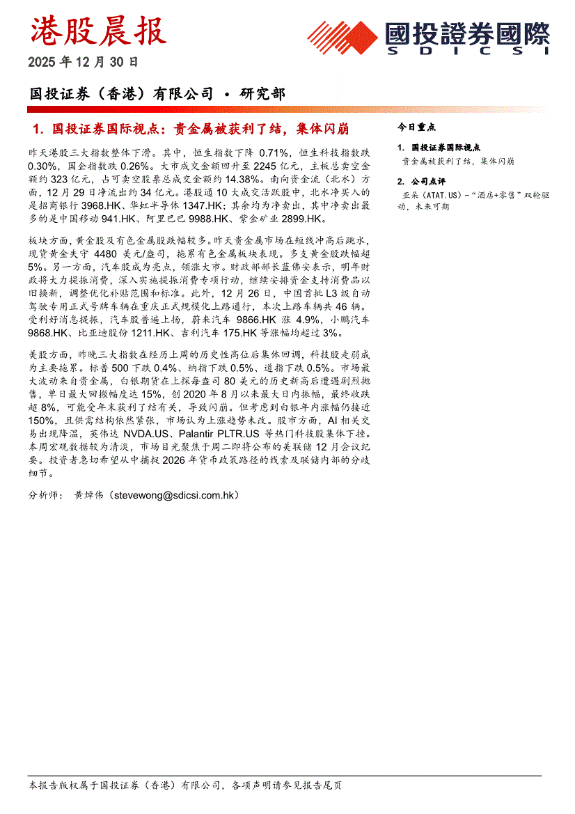光大证券(国际)-大行晨报:人币短线有望再下一城-251230