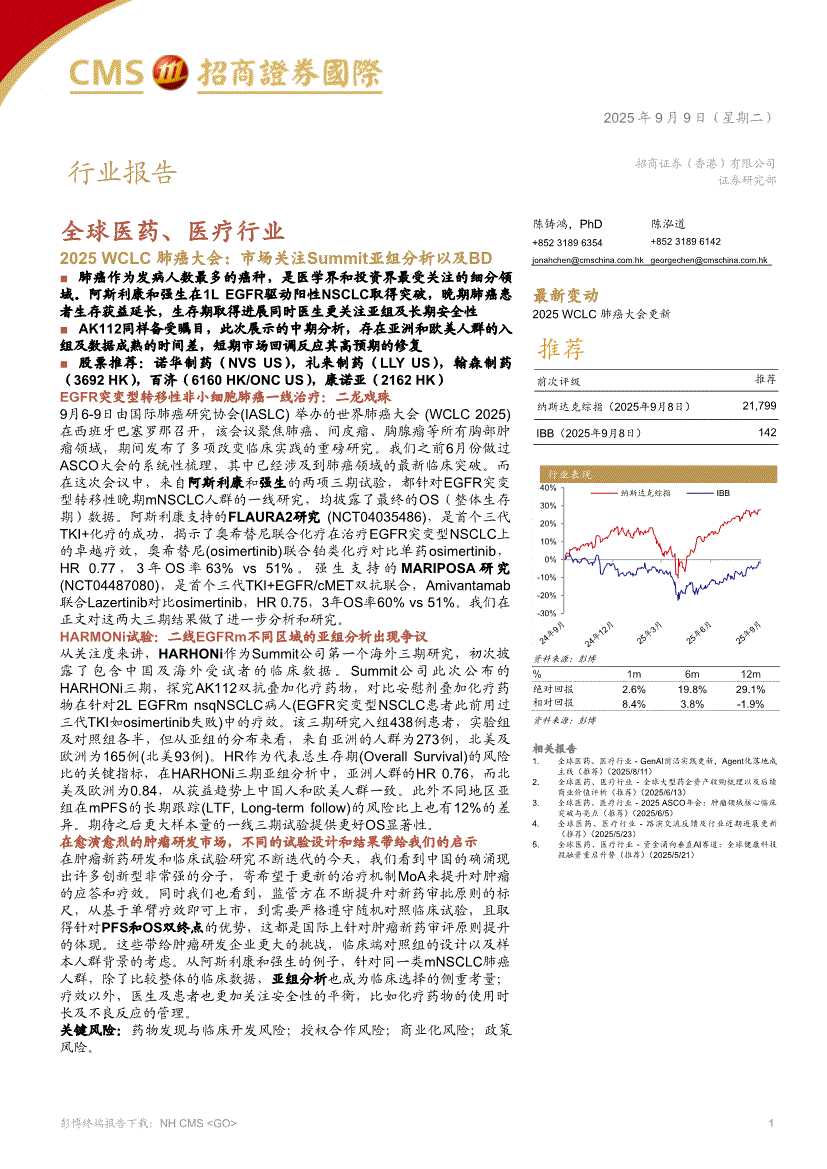 医药、医疗行业:招商证券(香港)-全球医药、医疗行业:2025 WCLC肺癌大会,市场关注Summit亚组分析以及BD-250909