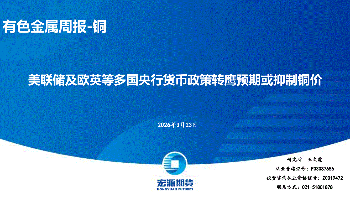 宏源期货-有色金属周报~铜:美联储及欧英等多国央行货币政策转鹰预期或抑制铜价-260323