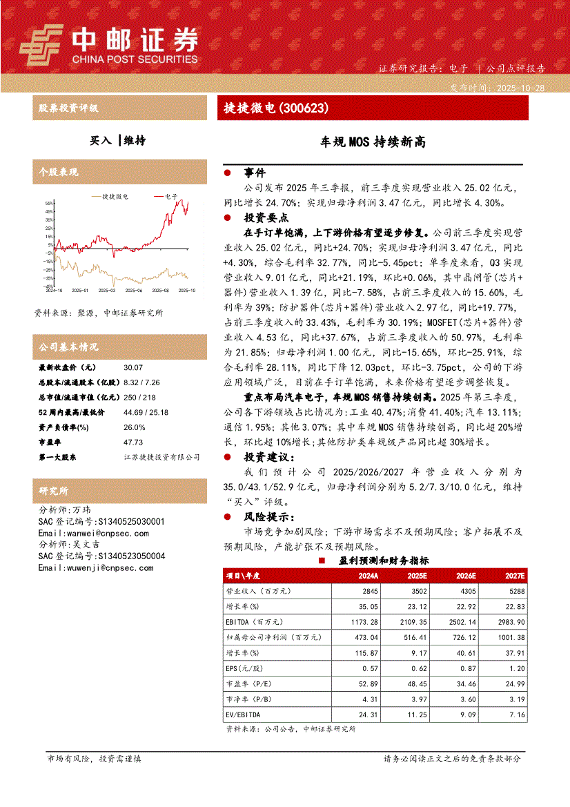 捷捷微电:中邮证券-捷捷微电-300623-车规MOS持续新高-251028