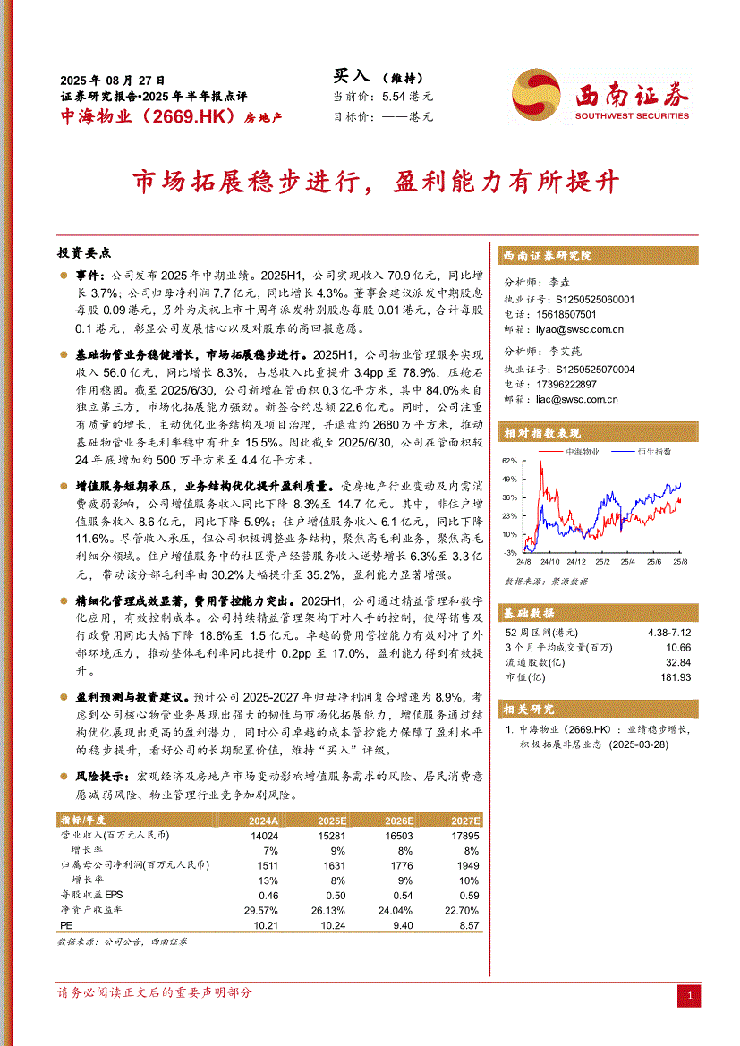 中海物业:西南证券-中海物业-2669.HK-市场拓展稳步进行,盈利能力有所提升-250827