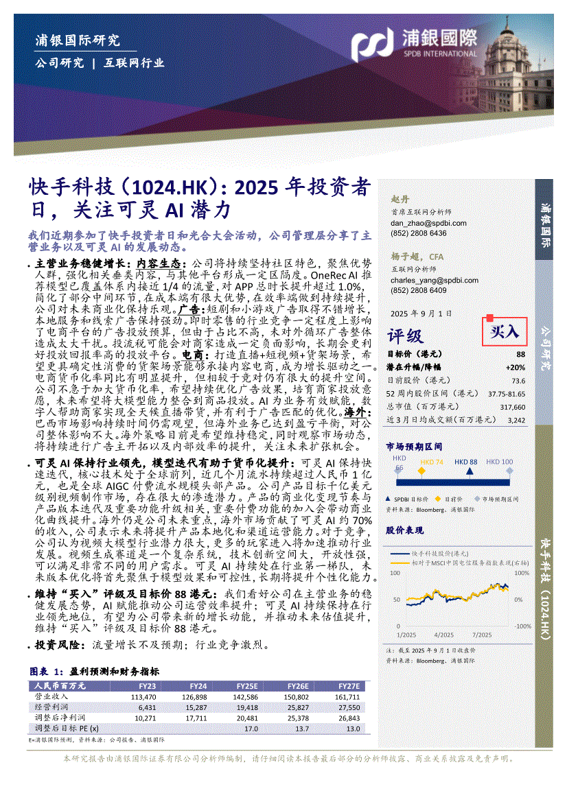 快手科技:浦银国际-快手科技-1024.HK-2025年投资者日,关注可灵AI潜力-250901