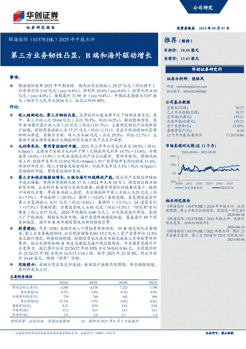 颐海国际:华创证券-颐海国际-1579.HK-2025年中报点评:第三方业务韧性凸显,B端和海外驱动增长-250907