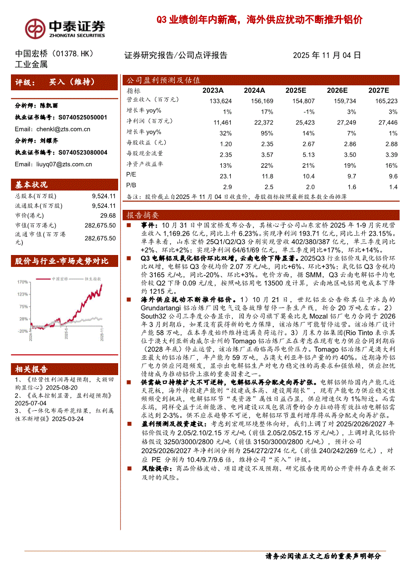 中国宏桥:中泰证券-中国宏桥-1378.HK-Q3业绩创年内新高,海外供应扰动不断推升铝价-251104