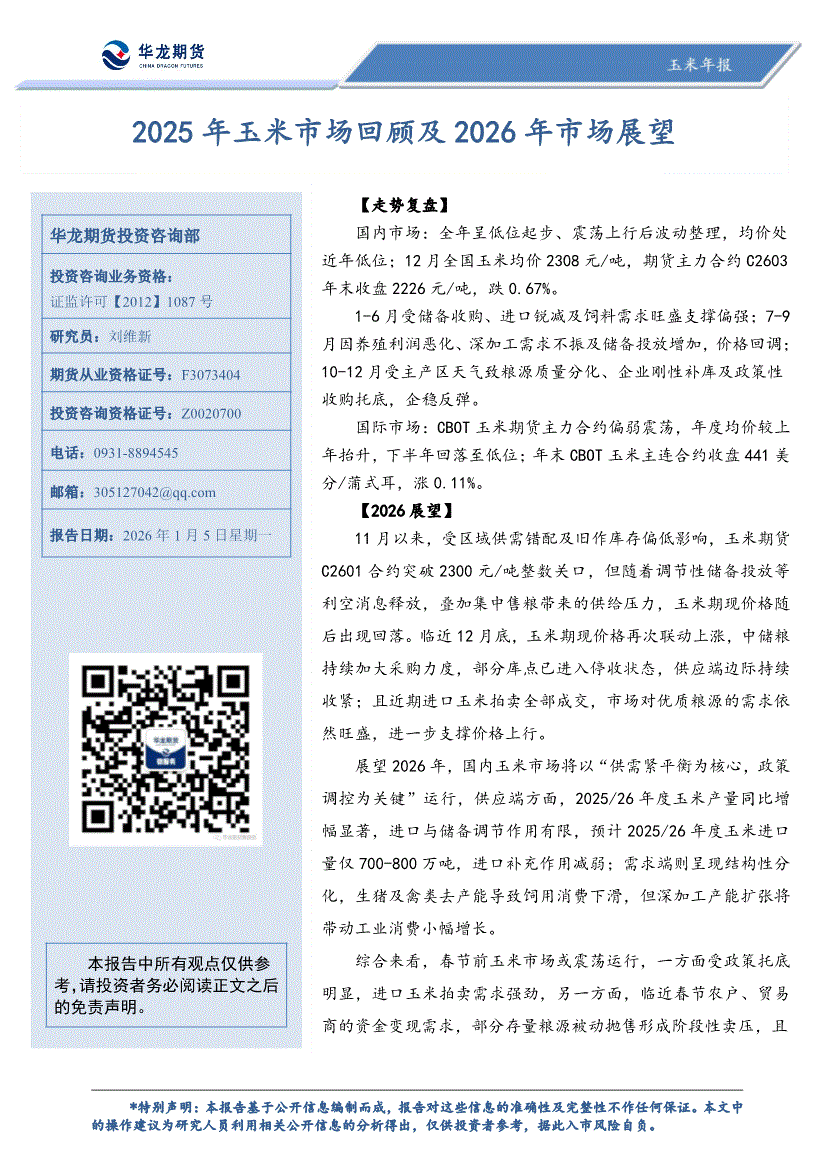 华龙期货-玉米年报:2025年玉米市场回顾及2026年市场展望-260105