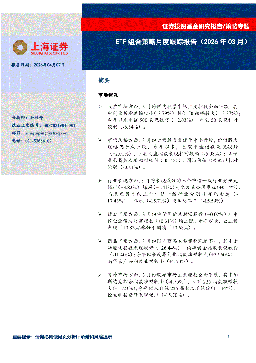 上海证券-ETF组合策略月度跟踪报告(2026年3月)-260407