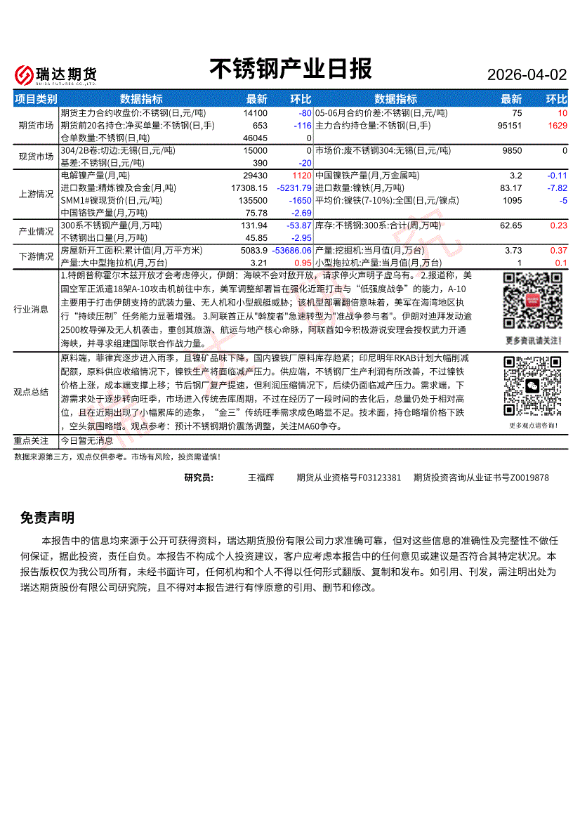瑞达期货-沪镍不锈钢市场周报:成本支撑生产受限,镍不锈钢偏强调整-260327