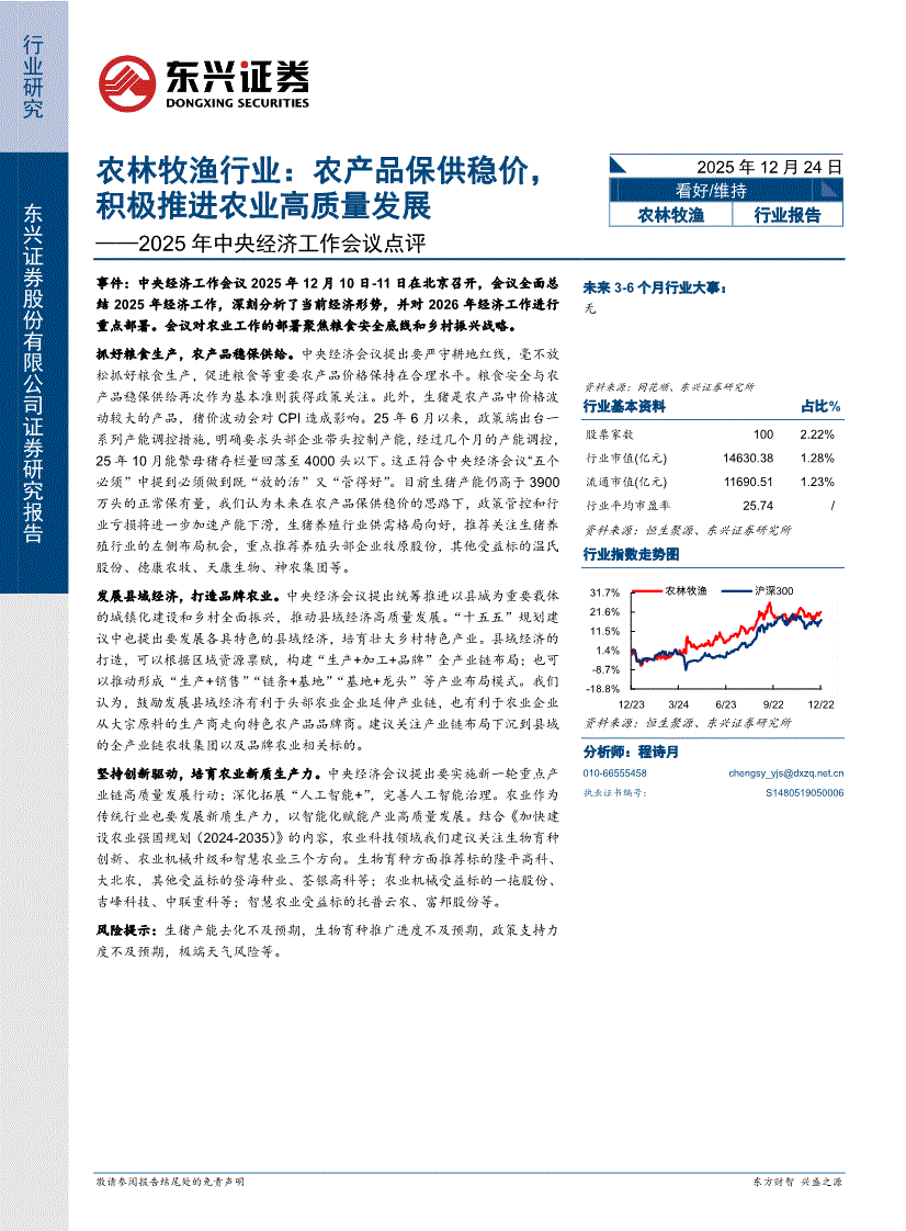 农林牧渔行业:东兴证券-农林牧渔行业2025年中央经济工作会议点评:农产品保供稳价,积极推进农业高质量发展-251224
