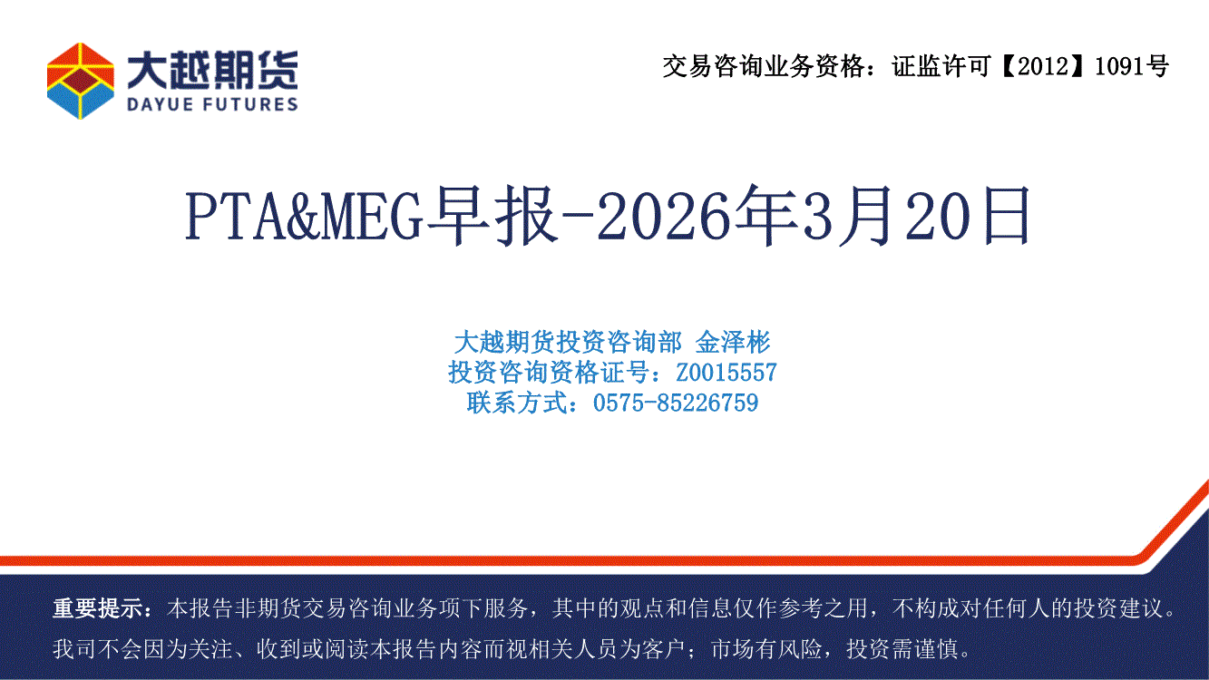 大越期货-PTA&MEG早报-260320