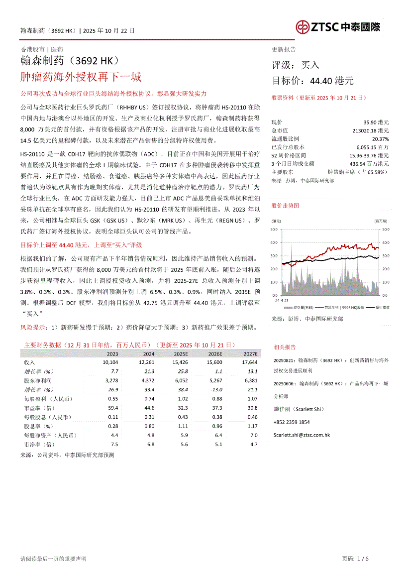 翰森制药:中泰国际-翰森制药-3692.HK-肿瘤药海外授权再下一城-251022
