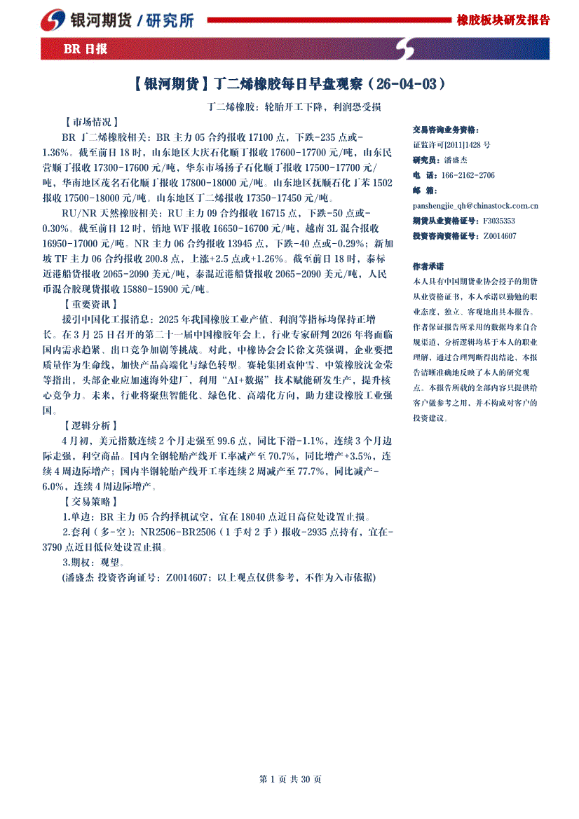 银河期货-丁二烯橡胶每日早盘观察-260403