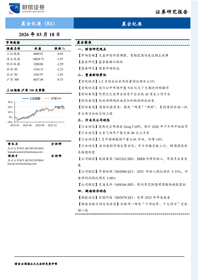 财信证券-晨会纪要-260318