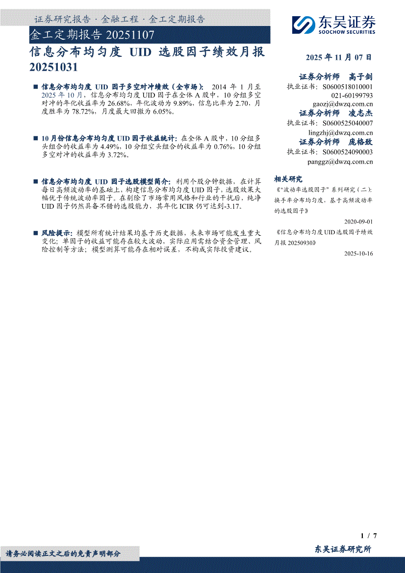 东吴证券-金工定期报告:信息分布均匀度UID选股因子绩效月报-251107