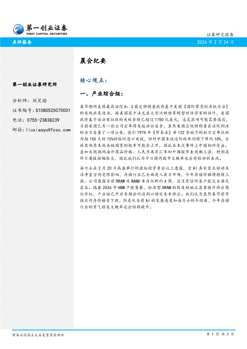 第一创业-晨会纪要-260224