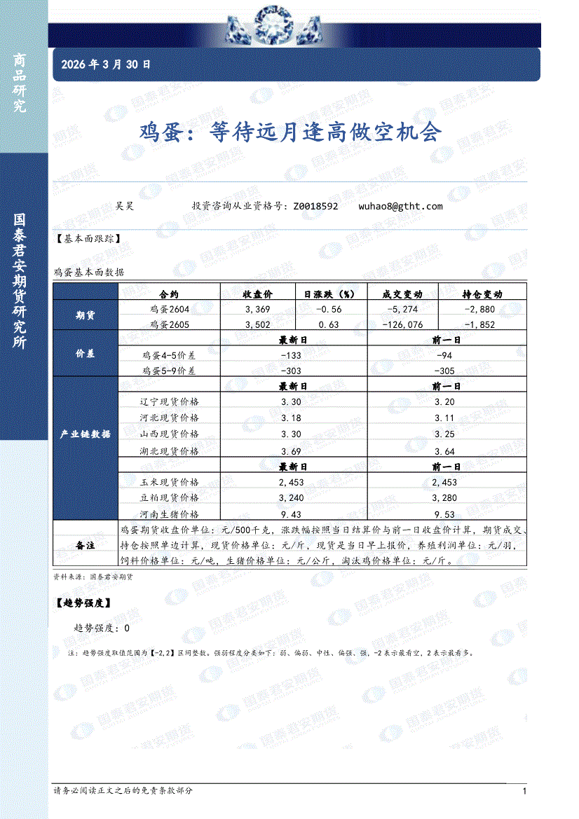 国泰君安期货-鸡蛋:等待远月逢高做空机会-260330