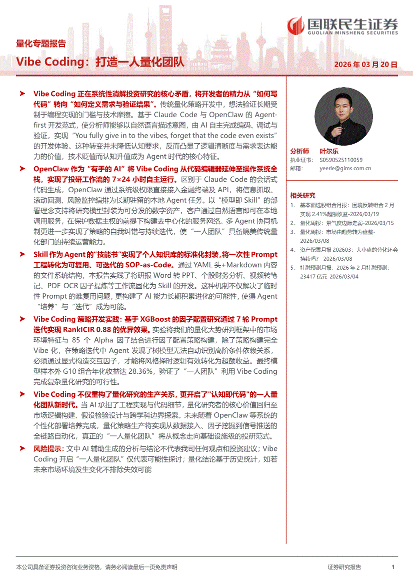 国联民生证券-量化专题研究:Vibe Coding,打造一人量化团队-260320
