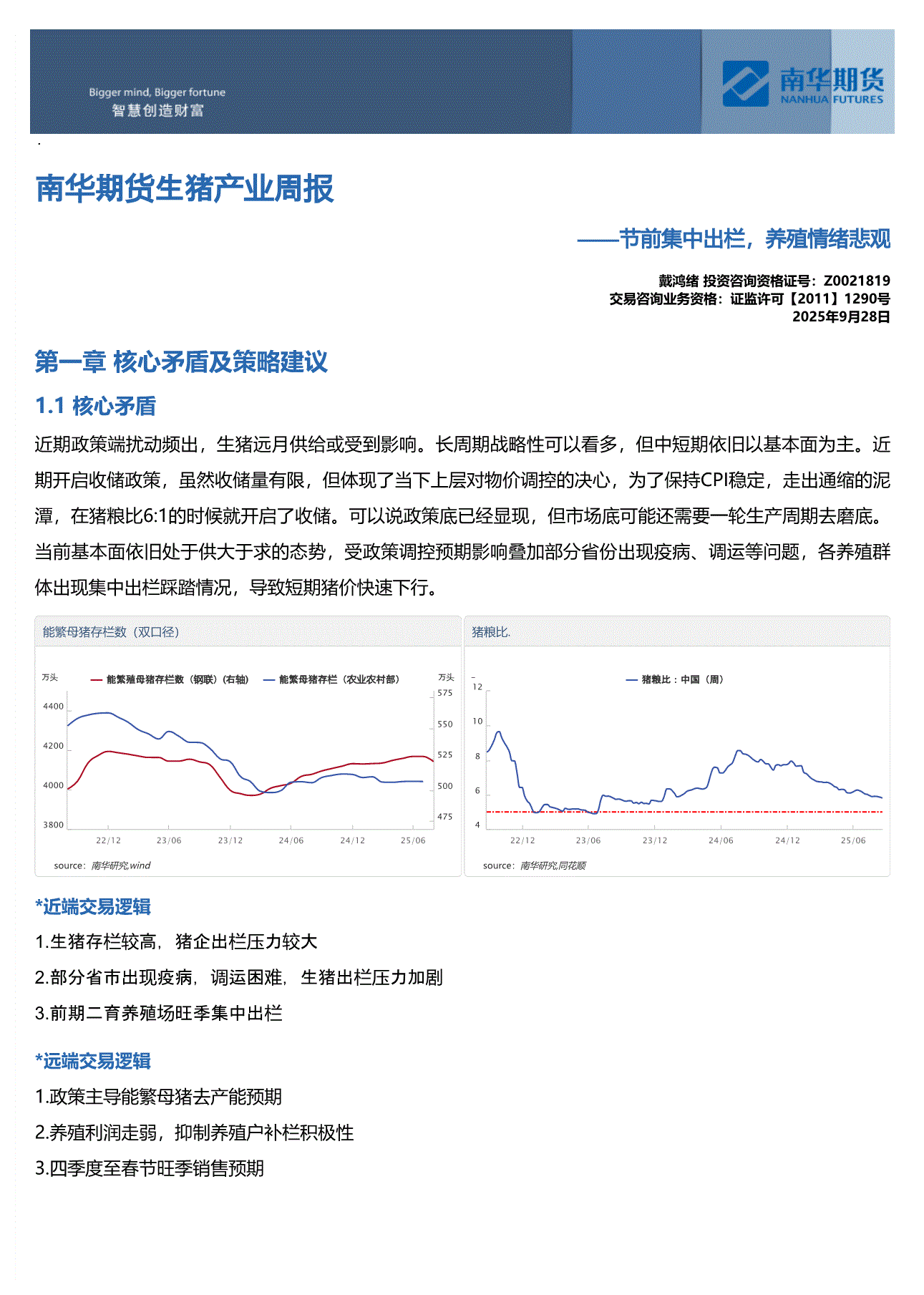 南华期货-生猪产业周报:节前集中出栏,养殖情绪悲观-250928