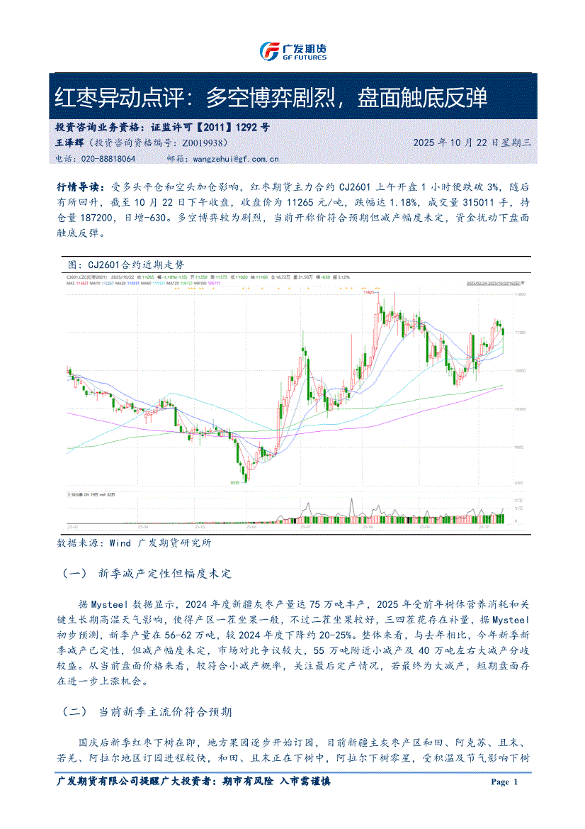 广发期货-红枣异动点评:多空博弈剧烈,盘面触底反弹-251022