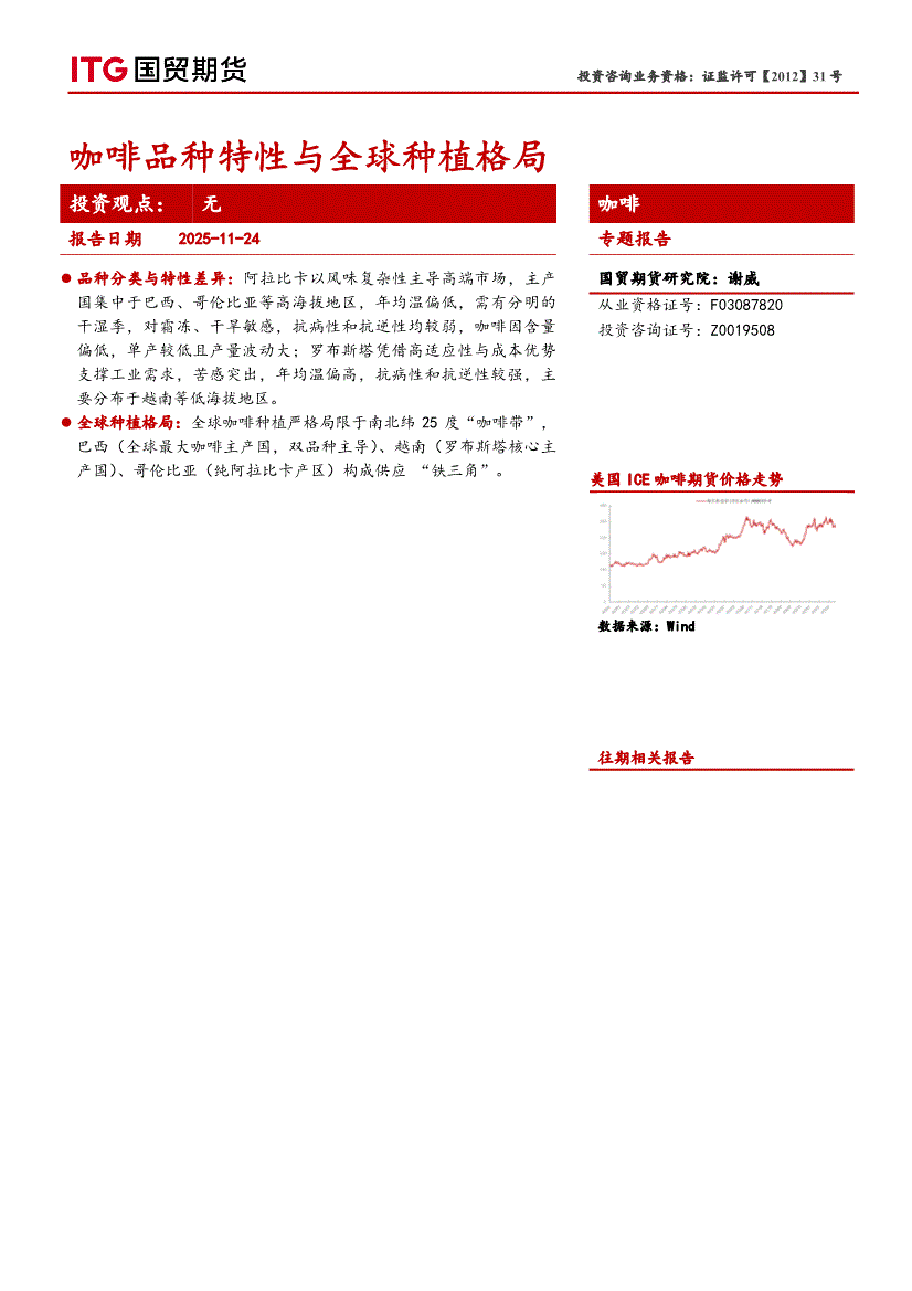 国贸期货-咖啡专题报告:咖啡品种特性与全球种植格局-251124