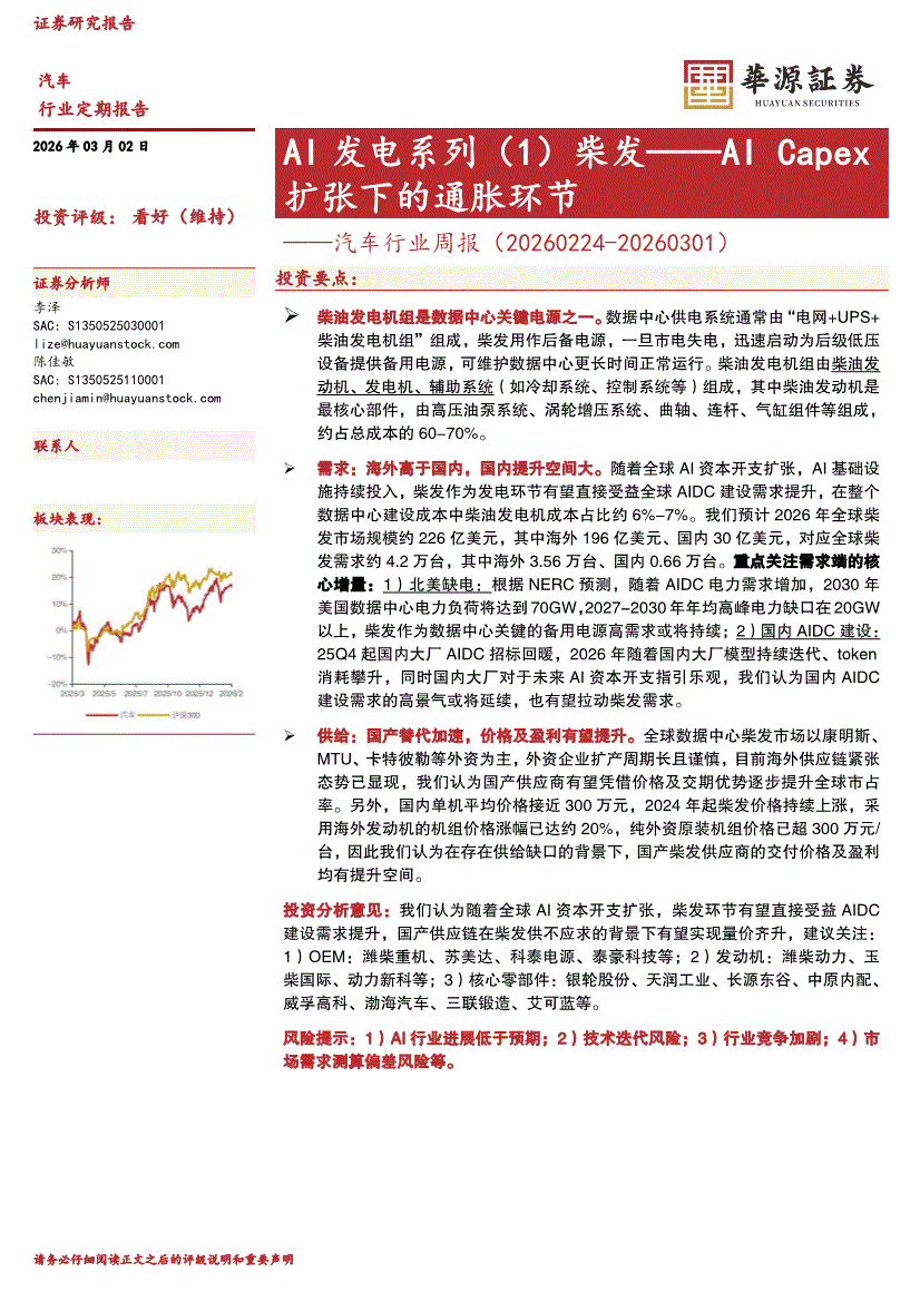 汽车行业:华源证券-汽车行业周报:AI发电系列(1)柴发——AI Capex扩张下的通胀环节-260302