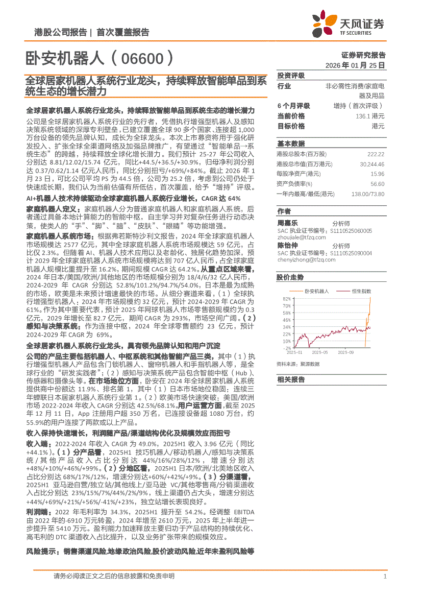 卧安机器人:天风证券-卧安机器人-6600.HK-全球居家机器人系统行业龙头,持续释放智能单品到系统生态的增长潜力-260125